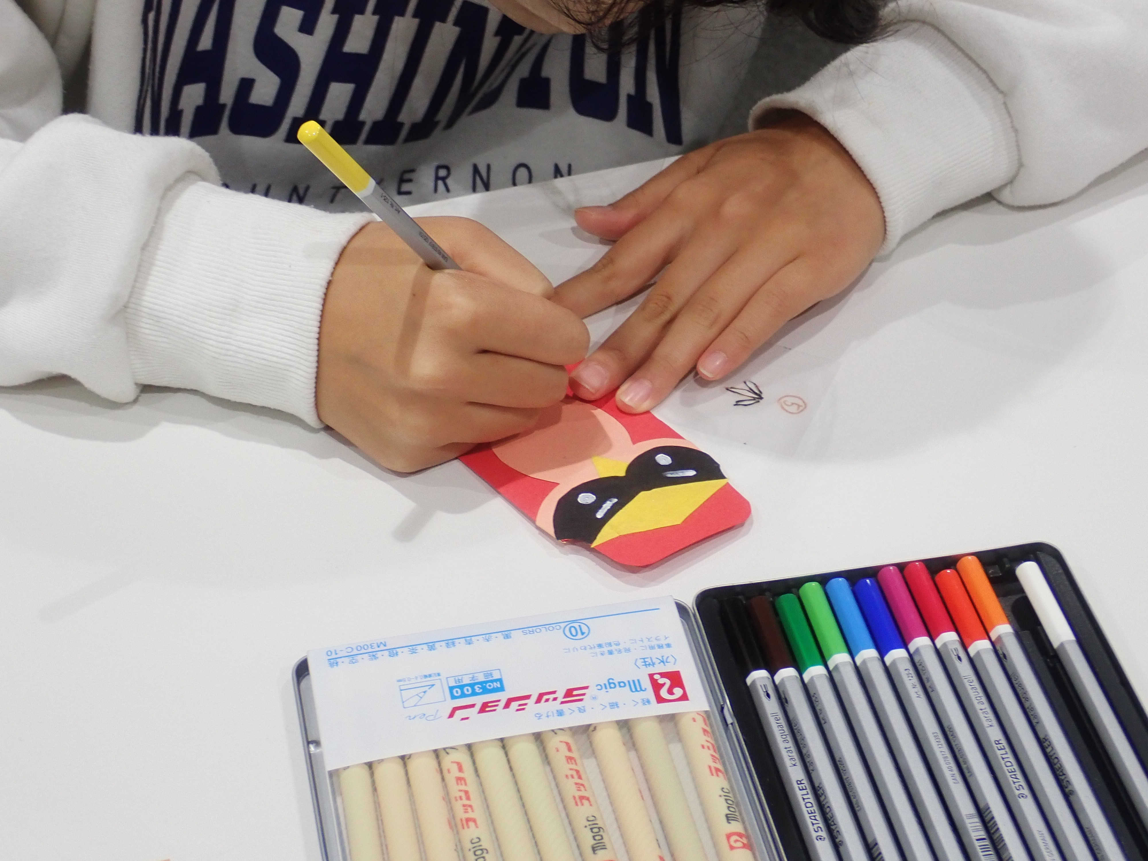 本講座では、天神様のお使い・ウソドリをモチーフとしたにんぱくオリジナルポチ袋を作ります。