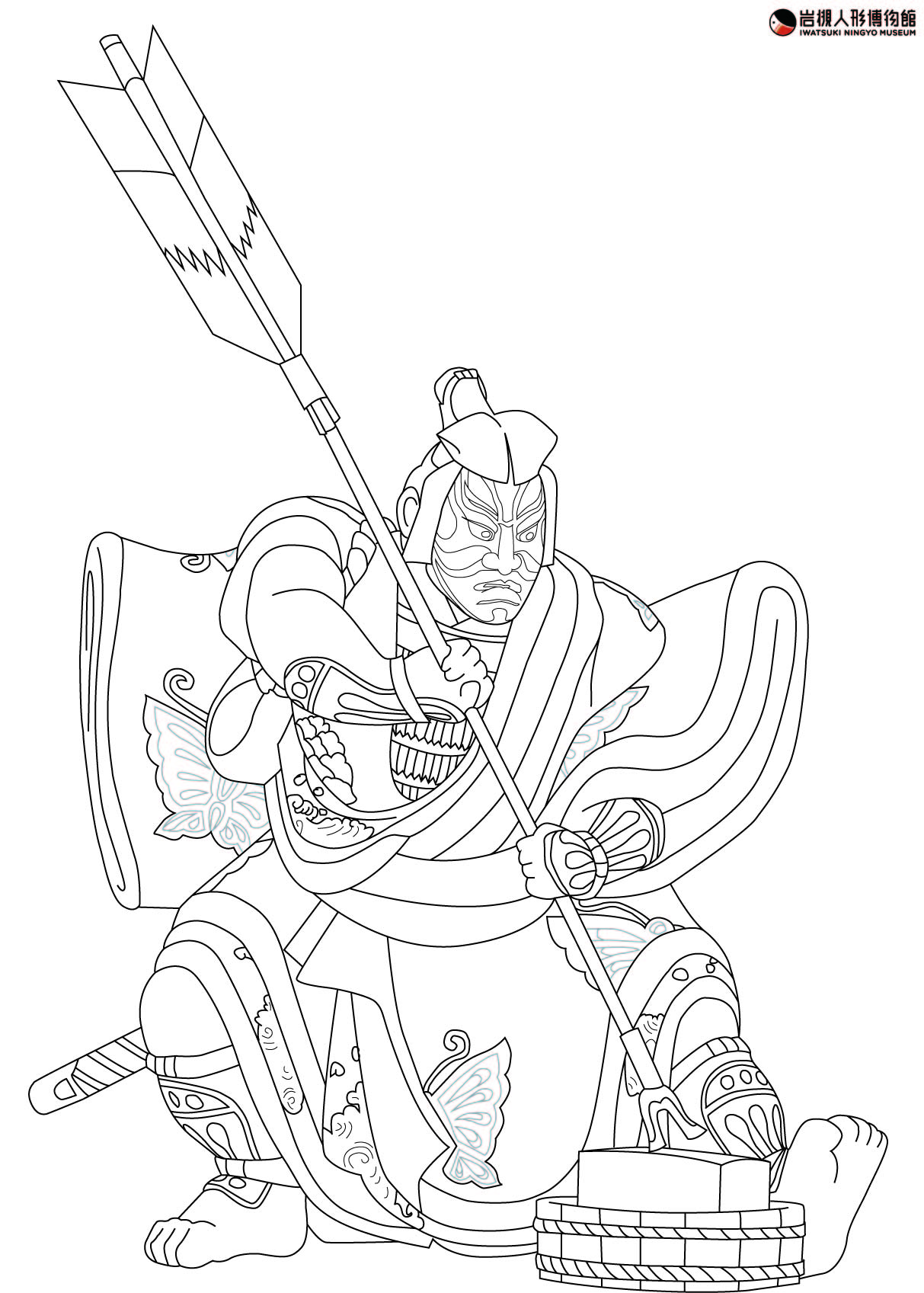 創作人形作家・久保佐四郎の作品「矢の根」をぬりえにしました。