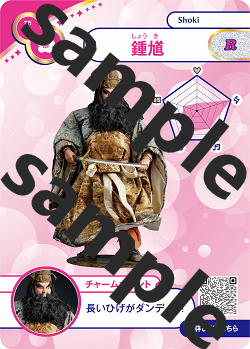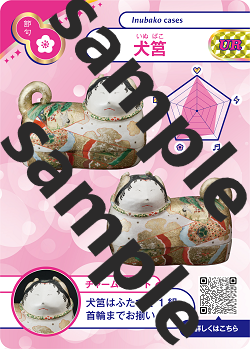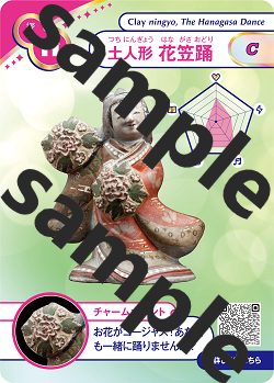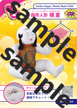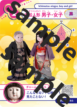 開館5周年記念事業の一環として、犬筥や裸童など当館を代表する人形がかわいいカードになりました。全8種類、中には、ホログラム加工のレアカードもあります。表面には、人形の写真や一言チャームポイント、人形の特徴を表したレーダーチャート、裏面には開館5周年を記念したロゴマークを記載しています。