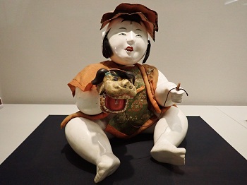 【12月13日:常設展展示解説の日】常設展 古典人形コーナー:嵯峨人形「裸嵯峨」、御所人形「立子 男子」「鯛曳」「獅子頭持」を展示しました!