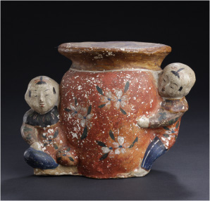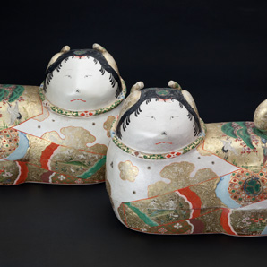 2025年12月9日(火) お知らせ常設展 古典人形コーナー:嵯峨人形「裸嵯峨」、御所人形「立子 男子」「鯛曳」「獅子頭持」を展示しました!